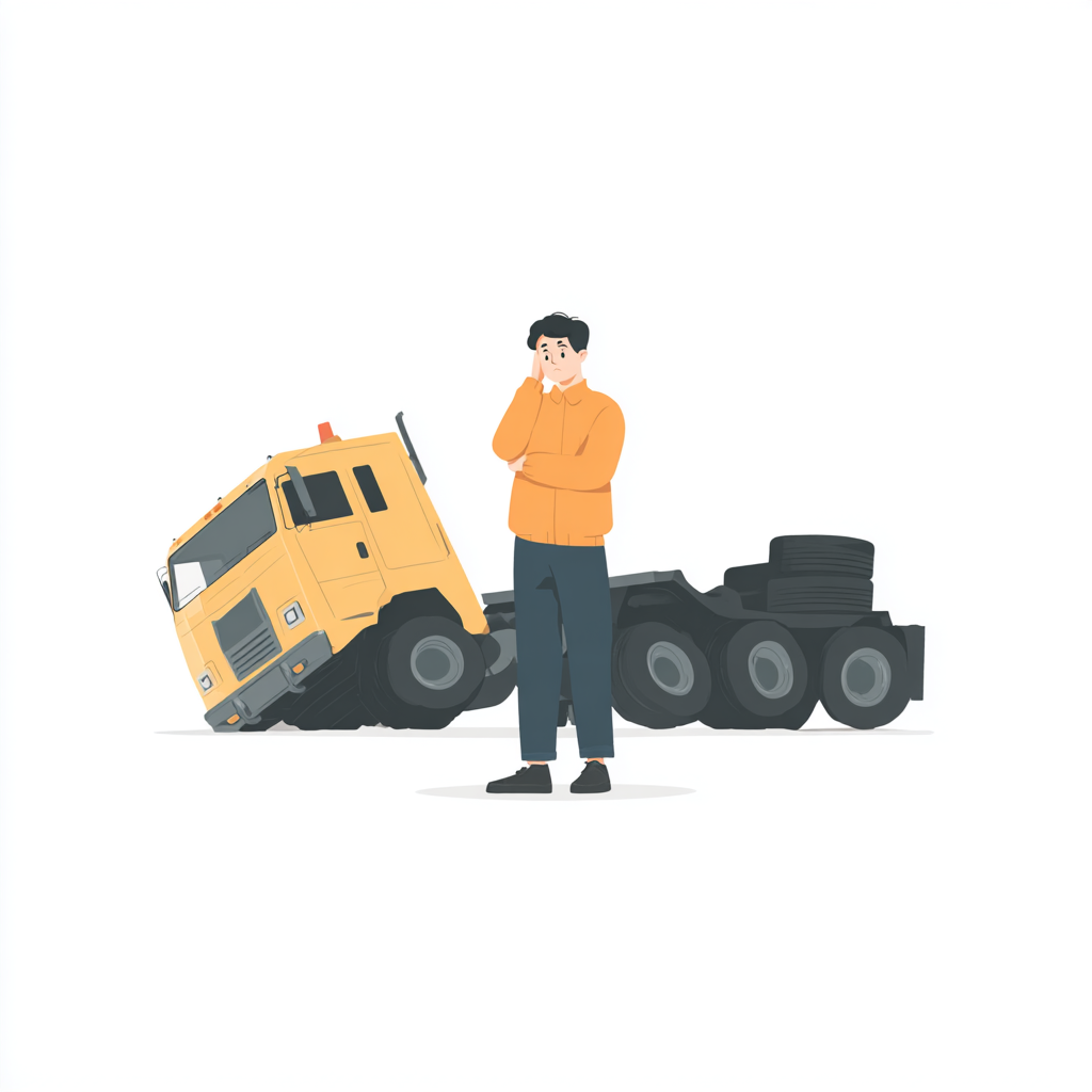 Alternatively, you can try hand-drawn cartoon illustrations, again, generated with Ai using a prompt like “A simple flat cartoon vector illustration of a worried truck driver, standing next to a toppled over 18 wheeler, bright color palette, white background, minimalist”.